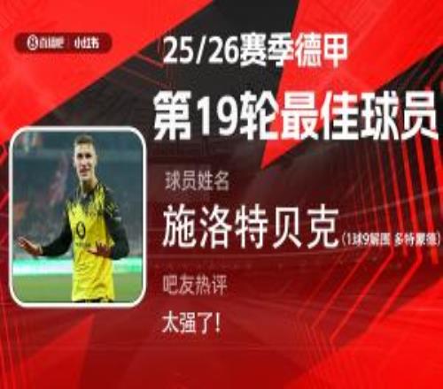 2025-2026赛季德甲火热进行中,体育播报和小红书联合发起每轮德甲最佳球员评选活动!第19轮评选结果出炉,施洛特...